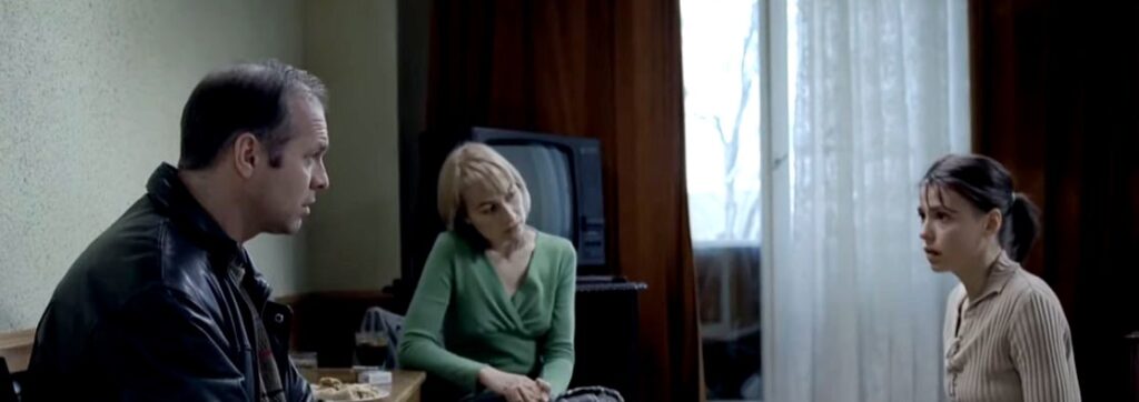Nella “latenza” della rappresentazione di un episodio singolare Mungiu dispone dunque il suo corredo di informazioni attraverso un’immagine d’insieme in grado di fornire le coordinate di un contesto ben più esteso, minimizzando la violenza icastica del dettaglio, della referenza nuda e precludendo ogni iperbole della rappresentabilità. La legge promulgata da Ceausescu a metà anni ’60 contro l’aborto (precauzione giuridica di natura non etica ma economica) proietta il quadro storico nell’inattualità di un presente non più sostenibile, nella caduta di un regime che ha già incontrato la sua catastrofe (prima della fine delle ideologie) in un Paese le cui sorti non sembrano comunque avere futuro, così come sembra alludere l’indifferenza raggelata degli sguardi di Otilia e Gabita nell’inquadratura finale, all’interno del più anonimo degli ambienti (la sala ristorante dell’hotel), che si deposita sull’incertezza del loro rapporto e sul vuoto che circonda le loro esistenze.