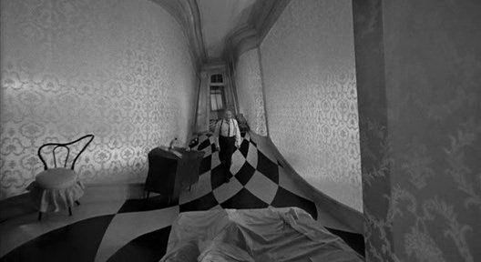 Impossibile non menzionare gli straordinari set allestiti dall'art director Ted Haworth: scenografie pensate e arrangiate in funzione espressiva sotto la supervisione del regista in strettissima collaborazione col direttore della fotografia James Wong Howe. Alcuni set furono disegnati con deformazioni prospettiche e fotografati con lenti normali, mentre altri furono assemblati senza alterare le proporzioni ma in vista di riprese con grandangoli estremi che ne curvassero le superfici. Frutto dell'inventiva di Haworth sono ovviamente gli uffici della compagnia (uno spazio labirintico attraversato da un corridoio lungo il quale si affacciano stanze comunicanti, una sala d'attesa e una camera operatoria) e la stanza da letto nella quale Arthur Hamilton, circondato da una scenografia in bilico tra caligarismo e surrealismo, molesta una donna in camicia da notte. Tra prospettive impossibili e ondulazioni marcatissime, la scena del presunto stupro, insieme alla sequenza finale, rappresenta il culmine psichedelico-allucinatorio delli'ntero film ('I designed the hallucination set because it had to be almost psychedelic').