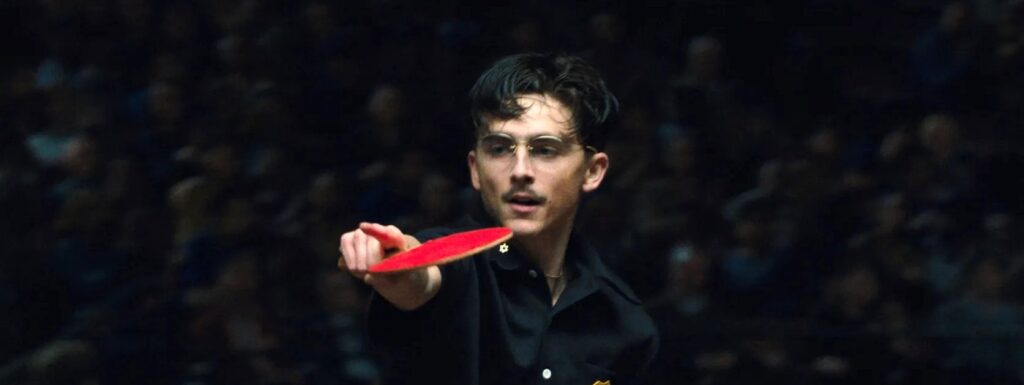 Con ogni probabilità, la geniale campagna promozionale che ha accompagnato l’uscita di Marty Supreme comincia involontariamente (?) qui, con le parole di ringraziamento che Timothée Chalamet aveva osato pronunciare dal palco dei SAG Awards a gennaio 2025, dopo la vittoria per la sua interpretazione di Bob Dylan in A Complete Unknown. Le reazioni furono spietate e divertite: l’accostamento tra quello che è uno degli attori più importanti della sua generazione (e proprio per questo, amato e odiato in egual misura) e grandi leggende del cinema e dello sport aveva fatto gridare il popolo del web alla lesa maestà, quasi fosse un disperato tentativo di disinnescare quell’auto-mitizzazione arrogante di cui Chalamet, in questa e altre occasioni, si era fatto portavoce. Il riferimento inevitabile a quel discorso, peraltro esplicitato dallo sfondo dello schermo del computer dell’attore nella finta riunione Zoom caricata sui canali della A24 che ha lanciato la campagna promozionale (paratesto clamoroso, quasi una puntata extra di The Studio), finisce da un lato per ribadire la centralità di Chalamet nell’intera operazione e dall’altro per generare un cortocircuito significativo tra il film e il mondo reale, che in qualche modo non solo sintetizza il senso ultimo di Marty Supreme, ma lo amplifica a dismisura.