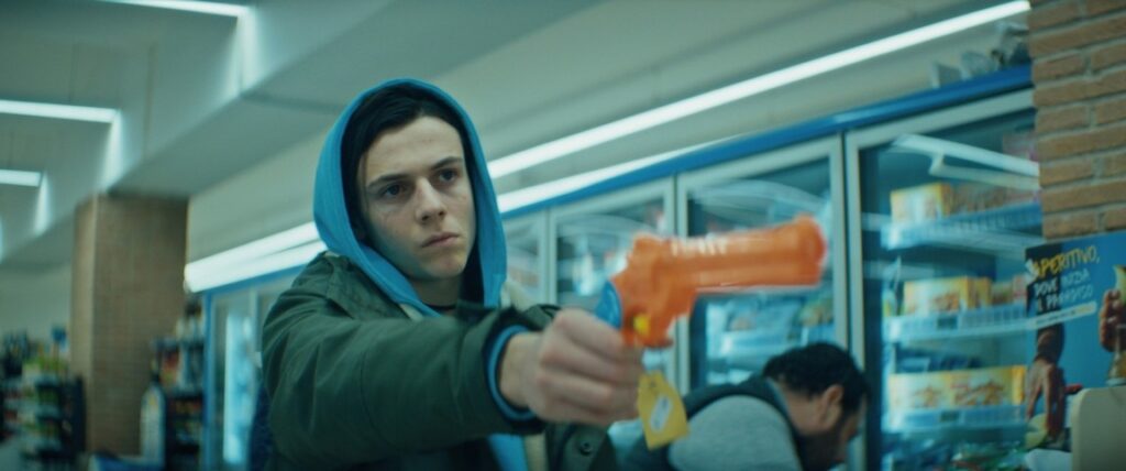 Un’opera sulla rabbia e sul vuoto profondo del nostro tempo, una famiglia orfana di madre (Cristina, interpretata da Cristiana Dell’Anna) e di amore: un adulto (Fabrizio Rongione) e un adolescente (Francesco Gheghi), Thomas ed Enrico, immobilizzati dalla perdita e incapaci di riannodare i fili di un rapporto padre-figlio soffocato dalla colpa e dalle accuse; una bambina, Barbara, che li osserva, soffre e reagisce come può. Una prostituta (Elena Di Cioccio) che sembra l’ultima innocenza dell’umanità, ma che vediamo troppo poco. Tutti traiettorie, punti di fuga, fili metallici tesi da un burattinaio cinico, niente affatto misericordioso, languido nei bassifondi. Il non detto, il misteriosamente taciuto, il veleno ingoiato, il vapore denso del rancore sono i chiodi inflitti in questo derma familiare, la ferita non guarisce, il sale sopra vi è sparso, lo sterminio sembra imminente, eppure… In tutto questo Strippoli non indugia, si prende tempo, governa con sapienza, con eleganza il metaforico, e con straniata scansione eppure partecipe aderenza le rotte critiche dei suoi personaggi, deviate da pulsioni nascoste e lontane che deformano la realtà e la coscienza. Piove allora può espandersi: si muove angosciato negli spazi tra i piani, tra interni di case e anonimi esterni di quartiere, tra la superficie e il sottosuolo urbano, tra ciò che separa e unisce il bene il male. Il regista affina il discorso partendo da un immaginario horror con coordinate abbastanza precise, inchioda alla propria colpevole banalità le immagini di oggi e infine trova nelle fiamme, ancora nel cinema, nel fuoco, in ciò che brucia, l’unica luce, l’ultima salvezza possibile.