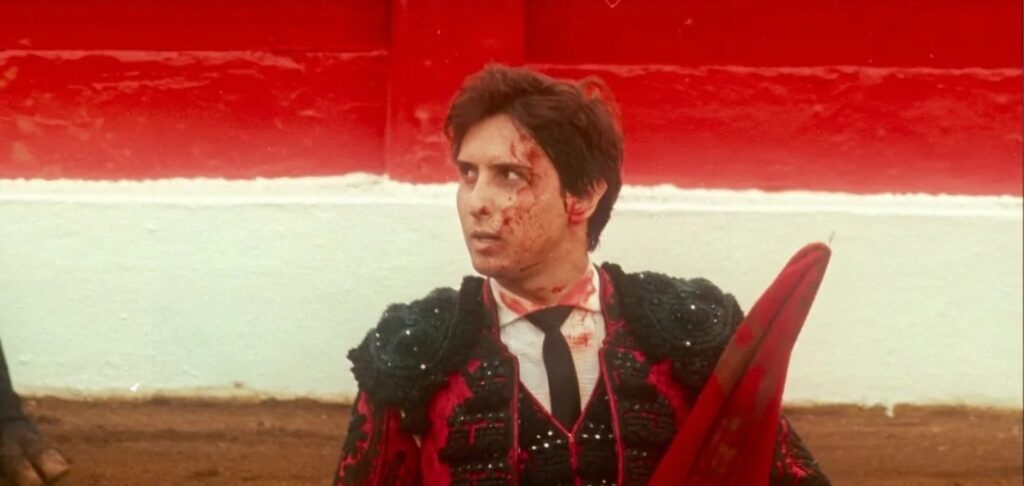 Le due inquadrature-chiave del film sono perciò da un lato quella che indugia sul sedile vuoto (abitualmente destinato ad Andrés) dell’auto dove il suo staff discute tutt’intorno, e dall’altro la primissima, quella con il toro che guarda in macchina, guardandoci negli occhi, mettendo subito in chiaro che quello sarà l’unico volto propriamente espressivo in tutto Tardes de soledad.