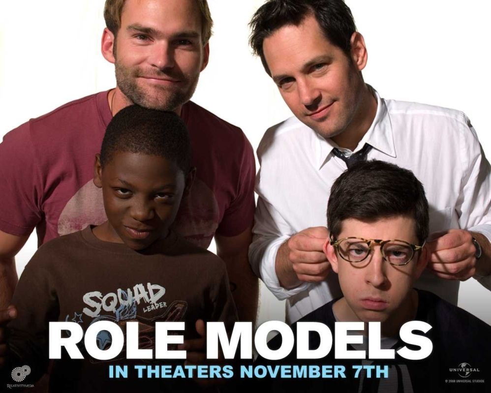 Le due facce del sistema diventano così il campo di battaglia per affermare se stessi senza i travestimenti preimposti dall'omologazione sociale, i luoghi comuni (su tutti i fast-food [1]), le frasi fatte (auguri e figli maschi) e i più disparati pregiudizi. In Role models il mettere la maschera segue due percorsi apparentemente inversi: Danny e Wheeler (adulti, ma non troppo) tentano di emanciparsi da essa, ma, in fin dei conti ne indossano unaltra; Augie e Ronnie (bambini, ma non troppo), allopposto, se ne confezionano una ben precisa, il primo fantasticando nel mondo degli RPG (role-playing game), il secondo atteggiandosi da infervorata sex-machine, tra libidini continue per le poppe (boobs) e sboccati giochi linguistici.