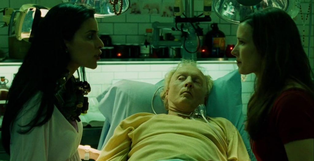 Il coupe de cinéma che risolveva l’intreccio di Saw II ci aveva favorevolmente impressionato: l’utilizzo truffaldino di una risorsa linguistica arcinota come il montaggio alternato rivelava, d’emblée, che la sincronia schermica schermo-nello-schermo prima, e appunto il griffithiano (non) salvataggio all’ultimo minuto poi, dietro la loro apparente “simultaneità narrativa”, celavano una diacronia diegetica che aveva ingannato personaggi e spettatori. In Saw III, questa simpatica tendenza di Darren Lynn Bousman a trastullarsi con la forma, purtroppo, scompare quasi del tutto per lasciare campo libero a un tripudio di autoreferenzialità celebrativa. Intanto, in modo non dissimile dalla Final Destination saga (ma assai meno autoironiconsapevolmente), la saga di (Jig)Saw sembra scarnificarsi per ridursi all’osso, ossia alla mera serializzazione di morti-enigma giustificate da pretesti narrativi affatto arbitrari (vero Leitmotiv di tutta la serie); Poi c’è la definitiva mitizzazione del protagonista, eretto allo status di luciferino santone e circondato da un alone di grandezza quasi oltreumano; Infine, e siamo all’aspetto forse più interessante, c’è la volontà di dare coesione alla saga introducendo elementi “retroattivi” non all’interno del solo III capitolo, ma addirittura ab initio (si scopre che Amanda era il braccio destro del Nostro già nel I capitolo). Registicamente, Bousman continua a darci dentro con la sua handycam impazzita “ben” coadiuvata dal montaggio quasi subliminale e da una fotografia che predilige i toni scuri con decise virate (mono)cromatiche. Ne risulta un mix risaputissimo appena vivacizzato da 1) qualche buona trovata e 2) dalla vera “novità” di Saw III: 1) Bousman, a inizio pellicola, sembra indirizzarsi verso una sistematica (con)fusione spazio-temporale ottenuta facendo convivere in una stessa inquadratura, a suon di fastforward e panoramiche a schiaffo, momenti narrativi diversi in uno stesso luogo e/o in luoghi diversi, tanto che sorge il sospetto (presto vanificato) che sarà quello il nuovo giochino formale che toglierà le castagne diegetiche dal fuoco; 2) Saw III fa il passo decisivo verso lo splatter, mettendo (finalmente?) in campo, da subito, un livello di gore decisamente alto e sostanzialmente estraneo al mainstream cinematografico della grande distribuzione. Musiche del solito Charlie Clouser con contributi di altri dinosauri dell’industrial come Ministry e Helmet.